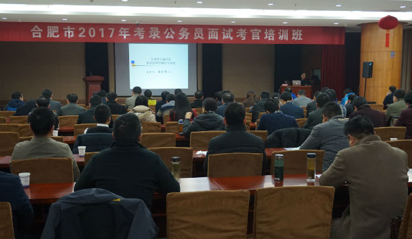 12月15日、16日,2017年合肥市考录公务员面试考官培训班在市人社局四楼会议室举办,旨在加强我市面试考官队伍建设,规范面试考官队伍管理,提升面试工作整体水平和公信度。各县(市)区公务员主管部门、市直有关单位100余人参加了培训。市委组织部副部长、市人社局局长、市公务员局局长吴松保参加了开班式并作动员讲话。
